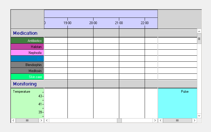 figure: It shows a Time Chart with Flank Controls and Header Control. All are separate controls but the 3D border around them makes it look as if they were only one control (including scroll bars).