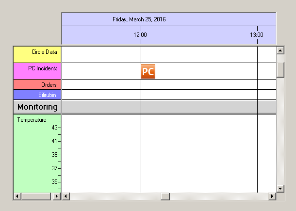 Display Objects have a certain width. Suppose you create a hotline software and want to symbolize customer calls by an icon. The icon's left edge indicates the time of the call while the right edge is placed more to the right. Please see the sceenshot below: A customer has called for PC support exactly at 12:00. So the left edge of the icon is located at 12:00. Meanwhile the right edge of the icon is located at another time which depends not only on the width of the icon but also on the current time scale factor of the NtTimeChartControl. In this example this is roundabout 12:45.