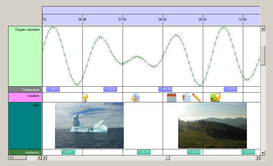 ('Oxygen saturation'). Crossmark objects are not located on a horizontal line but their ordinate (Y-coordinate) within the row is determined by their numerical value. The numerical value