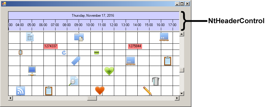 The Header Control is representing the time axis of the Time Chart. The object of type