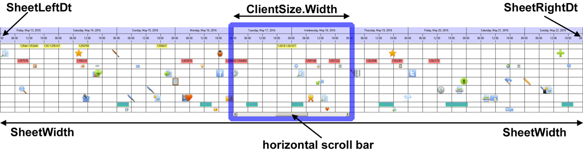 Suppose your data set consist of 25,000 data items spread over ten years. Suppose your current sheet is ten days long and 80 data objecs fall into its range. But as the client area of your control